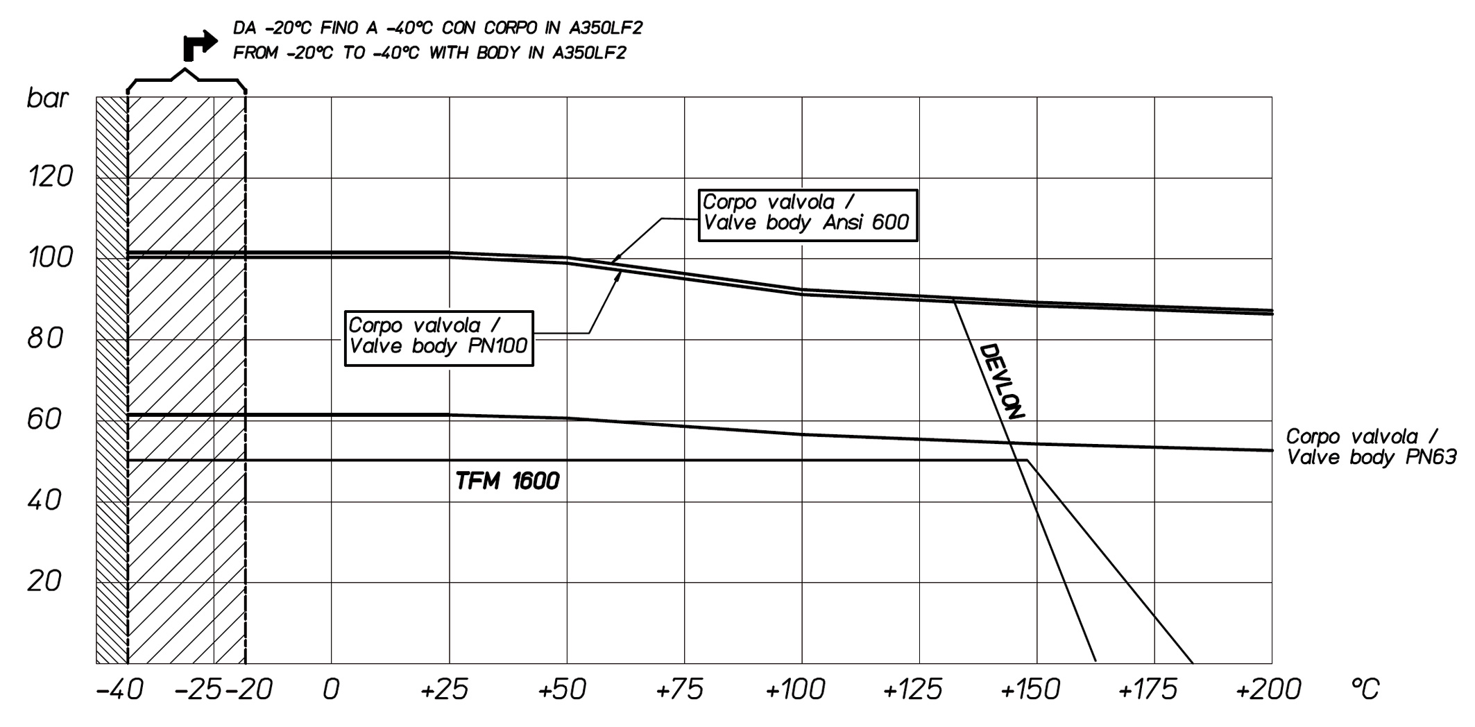 | ? : 對于公稱通徑 ≤DN40x32 的閥門型號,僅提供采用 DEVLON 材料做的 |