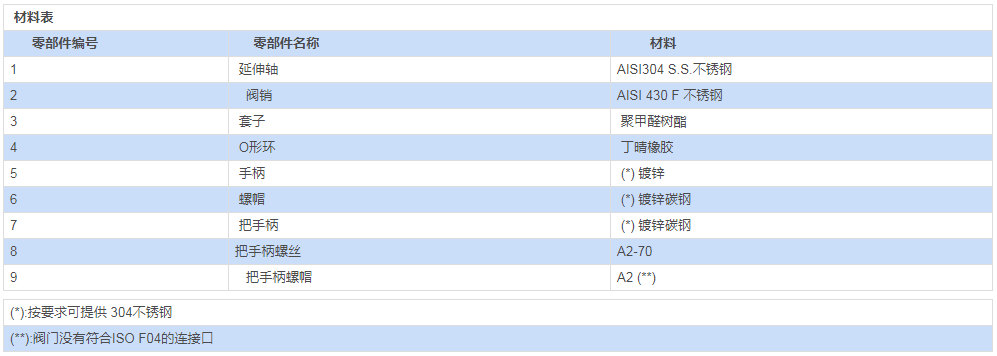 (**): 對于公稱通徑 ≤DN32 的閥門,僅能提供 CF8M材料的?