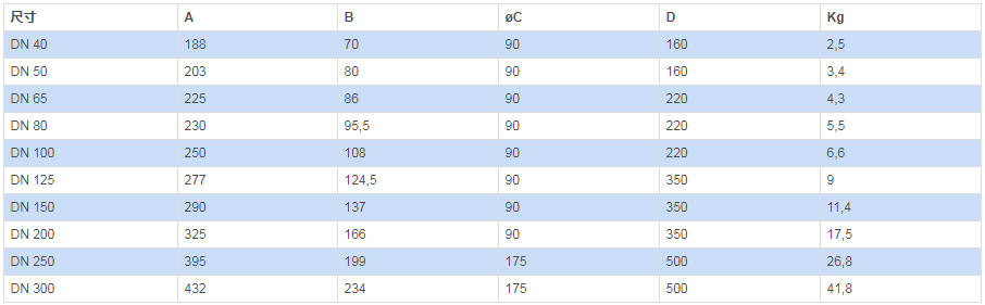 可提供的產品規(guī)格:從公稱通徑DN 40 至 DN 300 ,PN 10 - PN 16