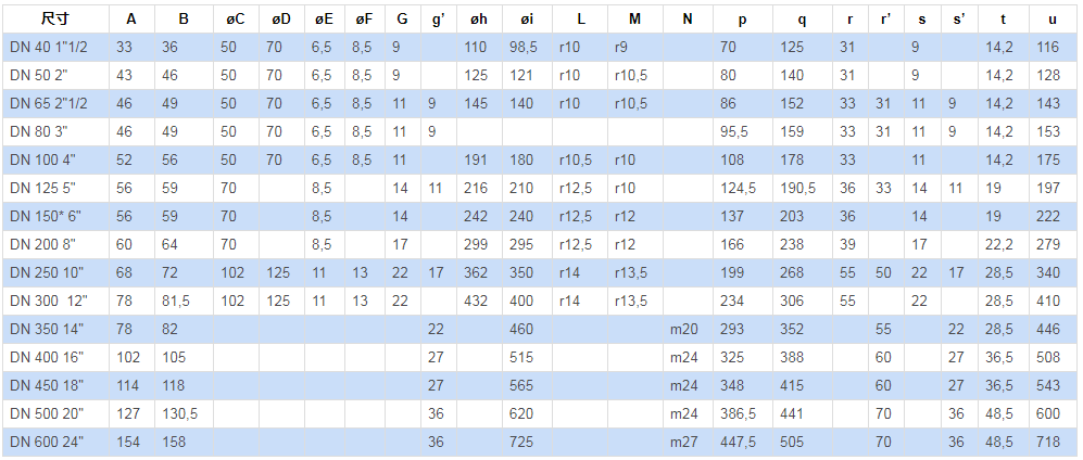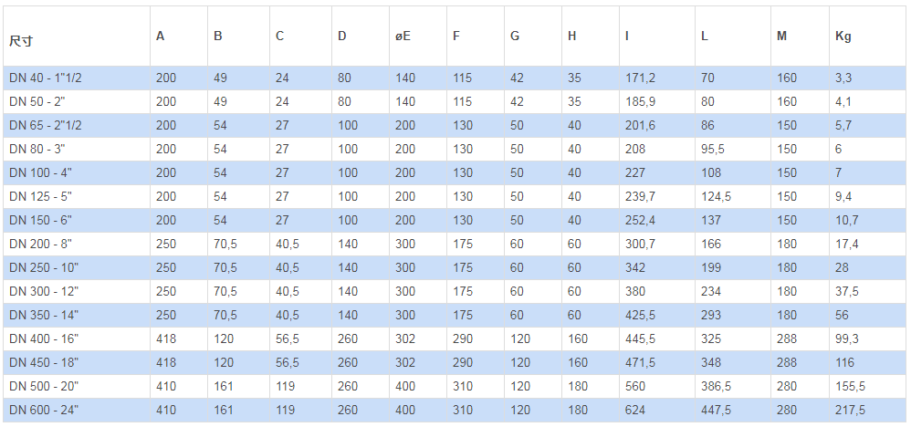 法蘭標準:型號PN 10 - PN 16 - ANSI 150不銹鋼: 公稱通徑從 DN 40 至 DN 300。