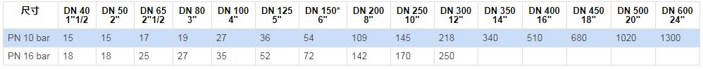 型號PN 10: 公稱通徑從DN 350至DN 600。